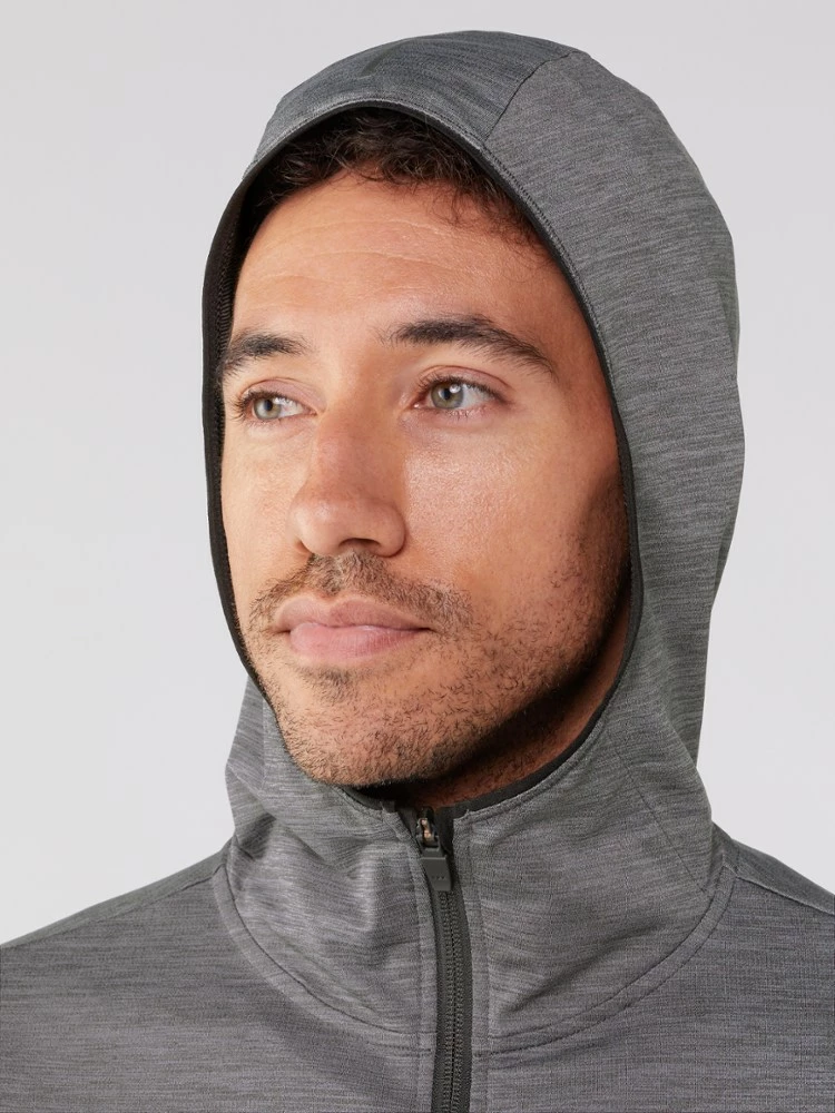 With 4-way stretch and wicking mesh fleece inside, the mid-weight men’s REI Co-op Active Pursuits full-zip hoodie is warm but breathable—ideal for warm-up and cooldown time.