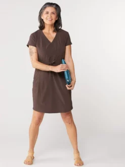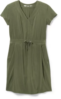 Whether you’re backpacking through India or sightseeing in South America, the women’s REI Co-op Aoraki travel dress will keep you comfortable with fabric that dries overnight after a quick wash.