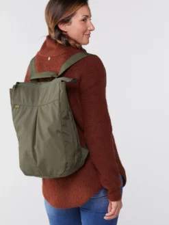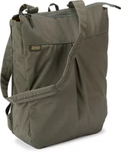 - Tote transforms to a backpack when you’re carrying heavier gear—simply stash away the tote straps and pull out the tucked shoulder straps; reverse process to revert to tote