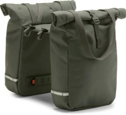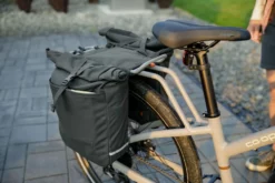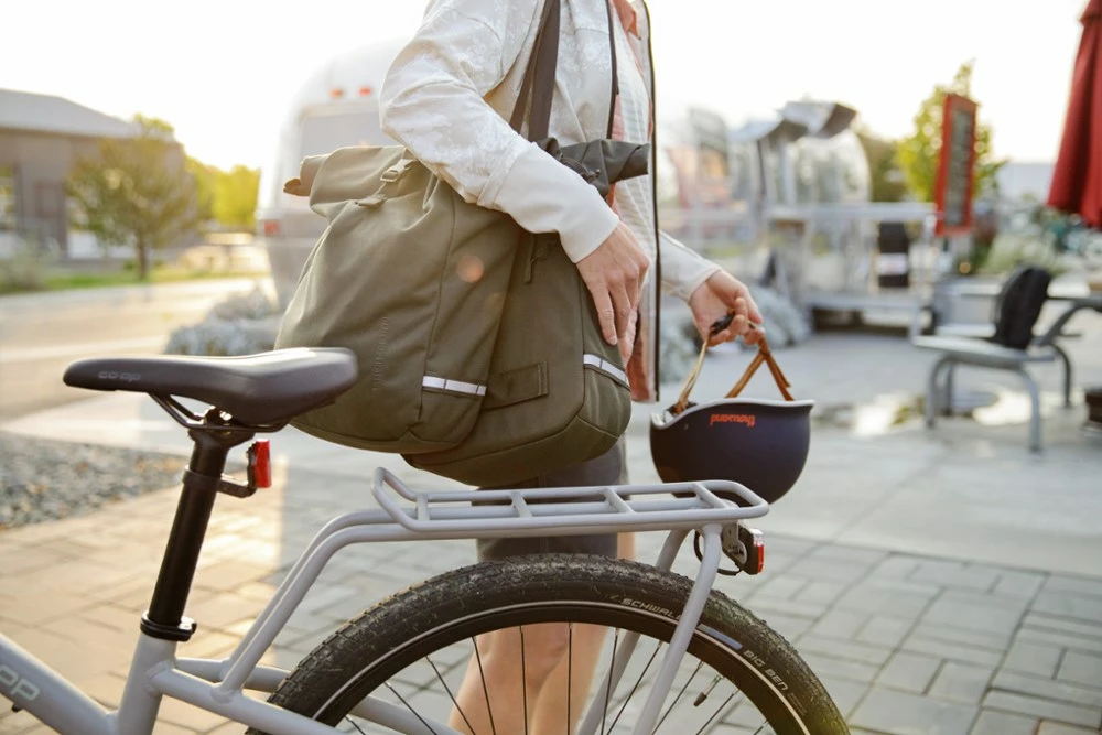 - Off the bike, sling the bags over your shoulder with comfy tote straps