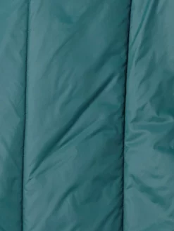 - Polyester fiber insulation with quilt-through construction is warm and lightweight