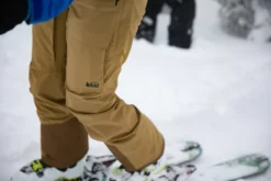 - Boot gaiters with grippy elastic seal out snow; tough scuffguard and reinforced hems provide durable protection in a placement that works for both skiers and snowboarders