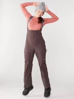 Catch the first chair or drop into the backcountry in the women’s REI Co-op First Chair GTX bib snow pants. They give you trusted waterproof breathable GORE-TEX tech plus a nice amount of stretch.