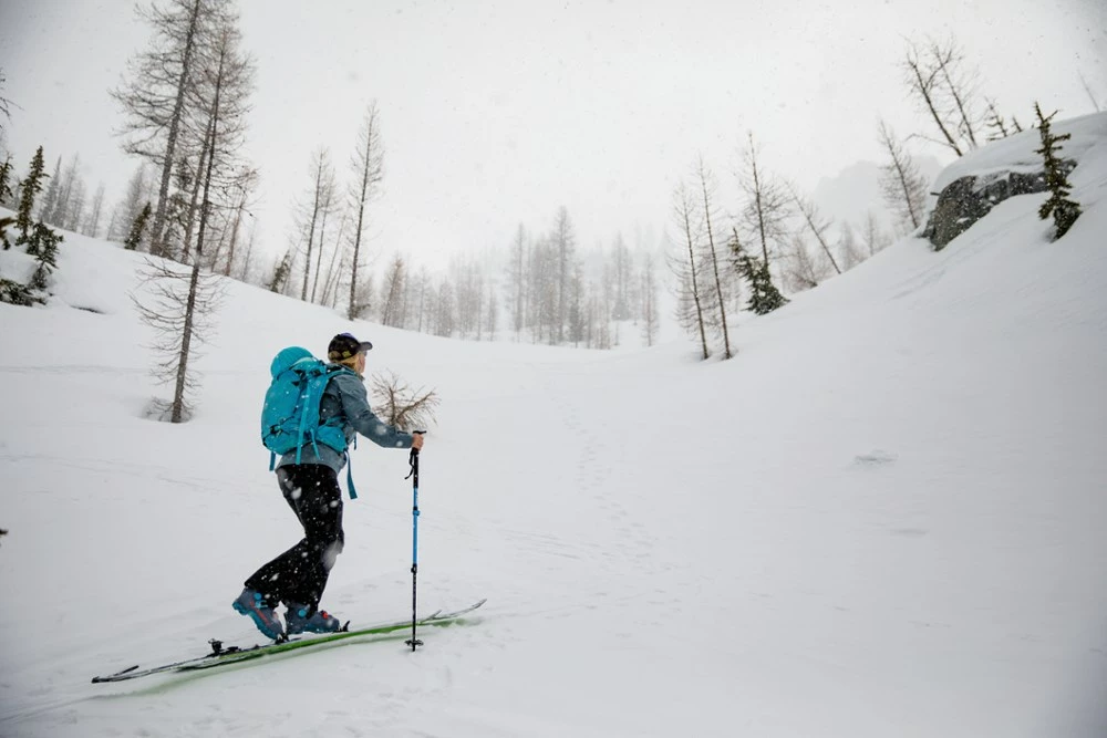 - Powder skirt snaps away when not needed; drawcord at hem helps seal out the elements