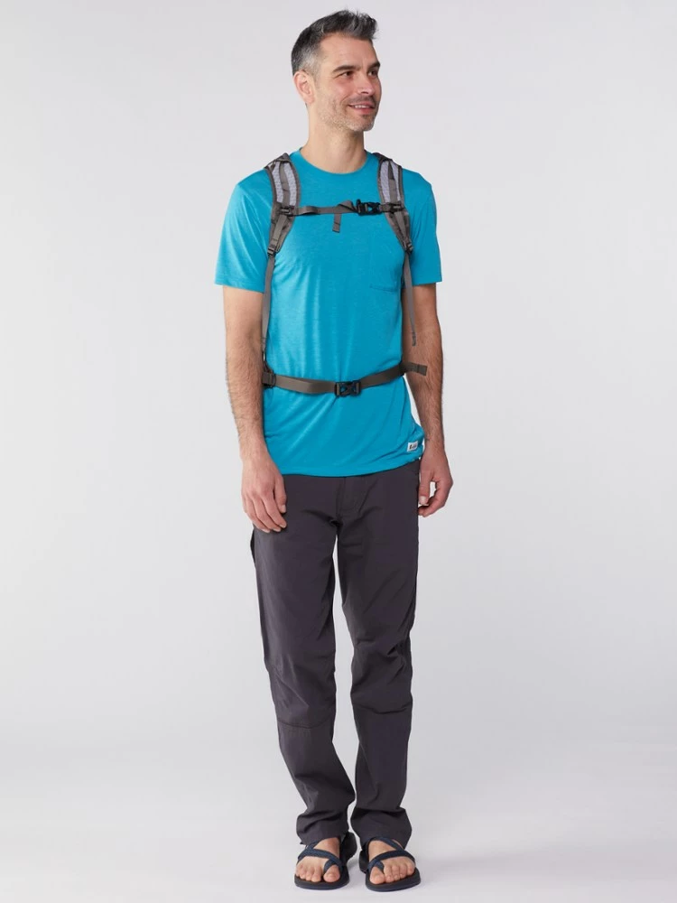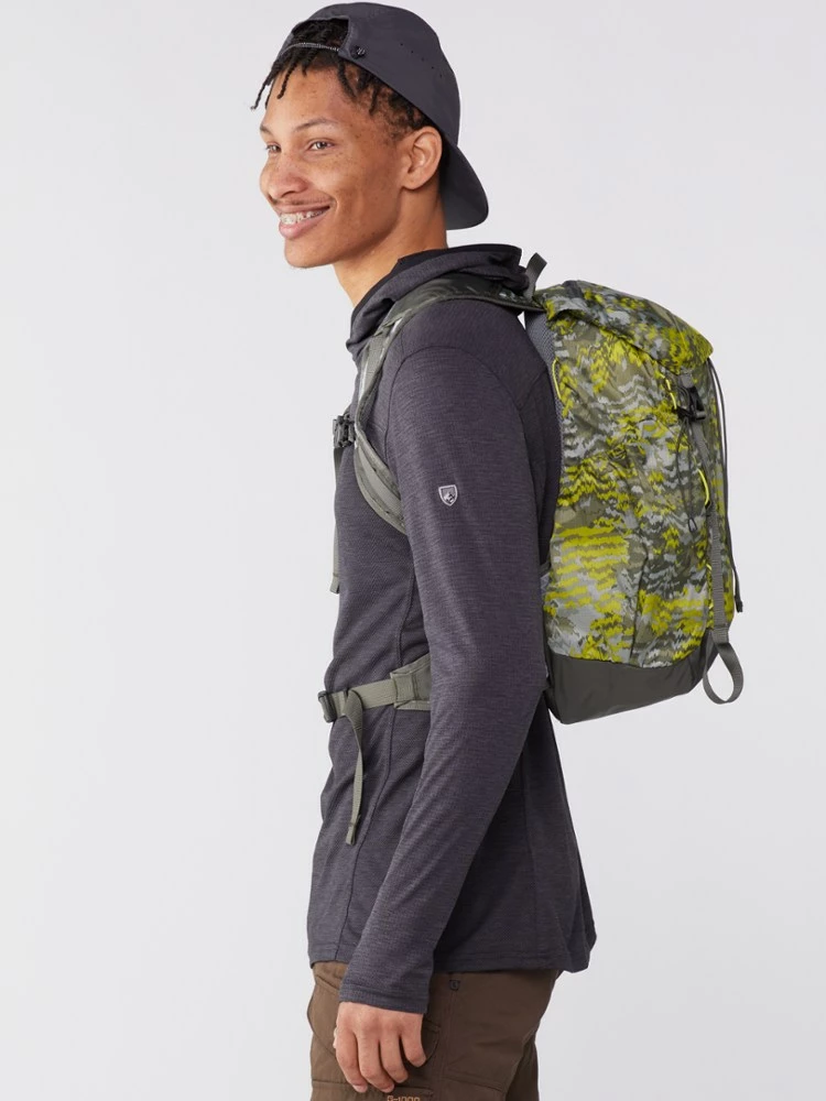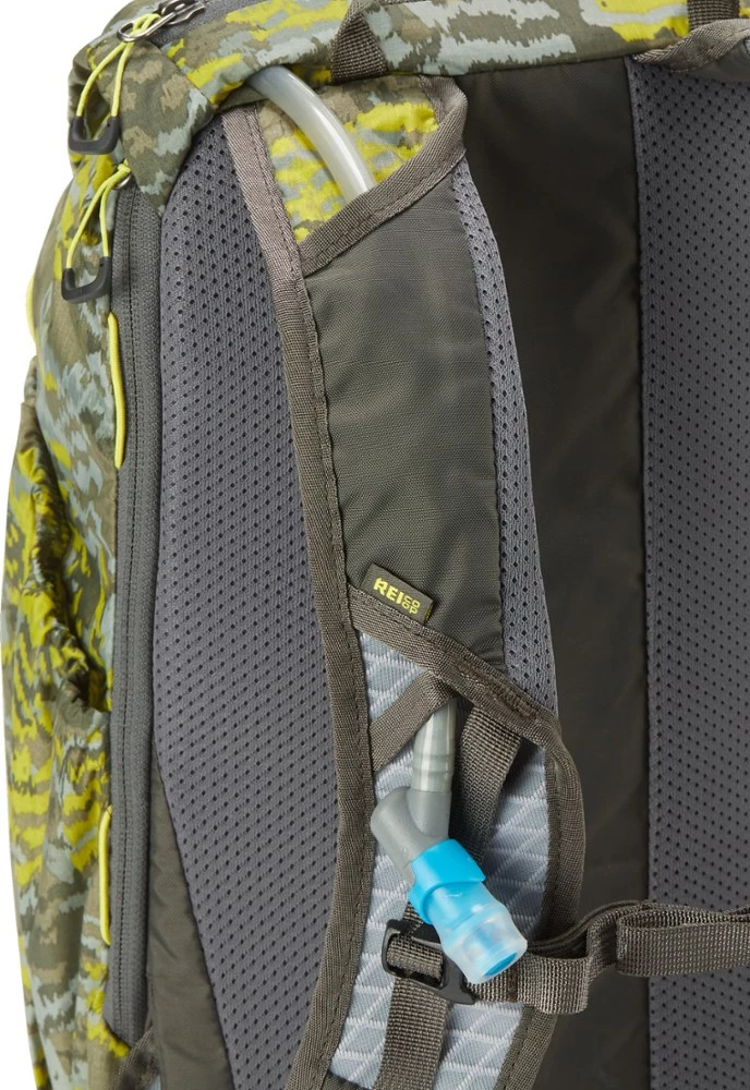 Stripped down to day-hike, summit-push weight, the 14 oz. REI Co-op print Flash 22 pack still gives you real comfort with a removable back pad, waist and sternum straps, and even a hydration sleeve.