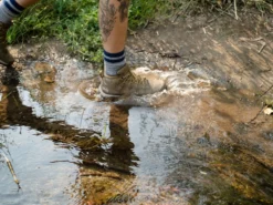 - 20% recycled rubber TerraGrip™ tread provides anti-slip grip on all kinds of terrain with 4 mm forefoot climbing lugs for going up and 4 mm heel braking lugs for coming down