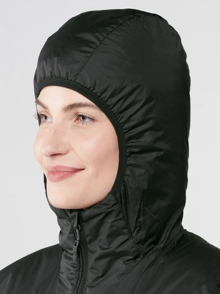 With ShadowBaffle™ construction that’s warmer than standard quilting, the women’s REI Co-op Flash insulated hoodie is amazingly warm for its weight—and made with 70% recycled insulation.