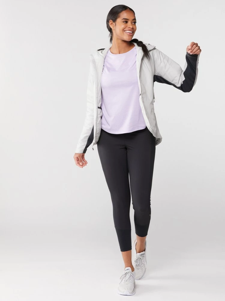 This one will be in heavy rotation. Keeping you warm with ShadowBaffle™ construction, the women’s REI Co-op Flash Insulated Hybrid hoodie is your cozy escape—made with recycled insulation.