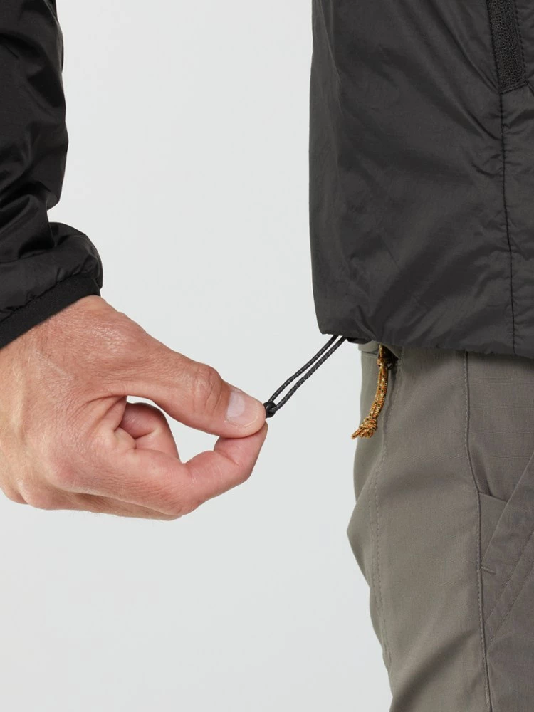- Pack-friendly zippered hand pockets fit with a pack’s hipbelt