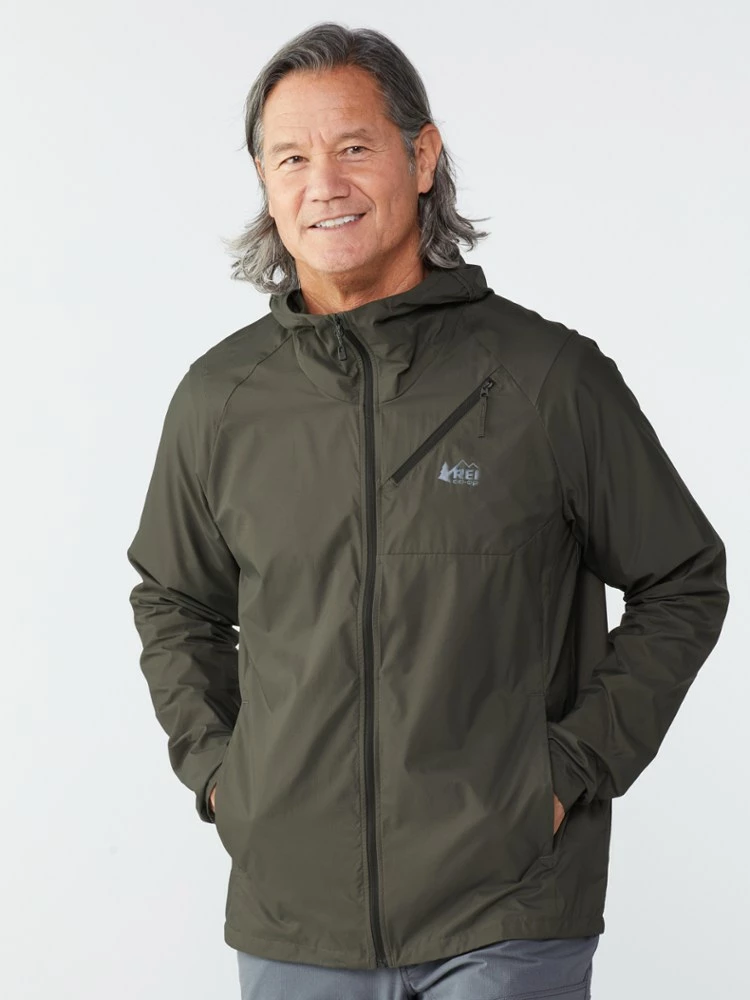 Ultralight and packable, the men’s REI Co-op Flash jacket may be your “just-in-case,” but it’s no afterthought—it’s all the weather protection you need for a day on the trail, plus some sweet extras.