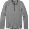 The REI Co-op lightweight base layer zip-neck top in men’s tall sizes knows how to keep you comfortable through a whole day of changes from cold to warm to sweaty and back to cold again.
