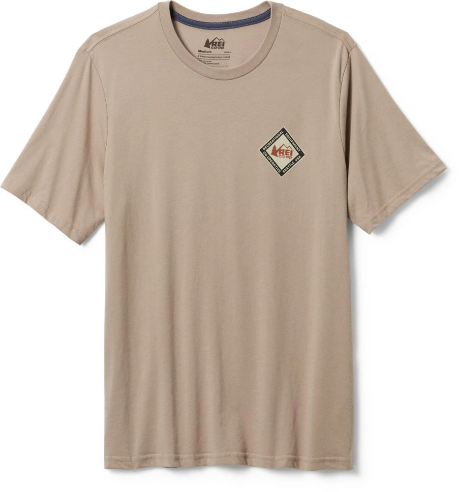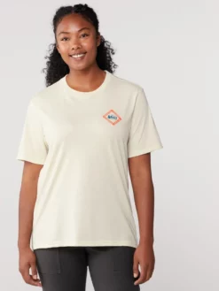 Being outside just feels better—get out there with the birds and the trees in your cool, breathable, short-sleeve REI Co-op Logo T-Shirt.