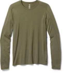 Soft, breathable and naturally odor resistant, the ultrafine merino wool of the men’s REI Co-op Merino 185 long-sleeve base layer top is beloved while sweating on the trail—and sleeping in the tent.