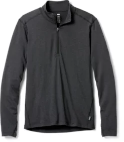 Hard-charging winter days start out cold, but you always warm up. The men’s REI Co-op Midweight Base Layer half-zip top offers the warmth of long sleeves and the easy venting of a front zipper.