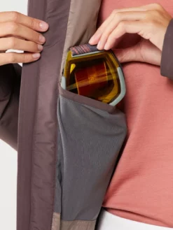 - Media port and plenty of pockets, including a lift pass pocket on wearer’s left wrist, a key clip in the left hand pocket and drop-in goggle pocket inside the wearer’s right