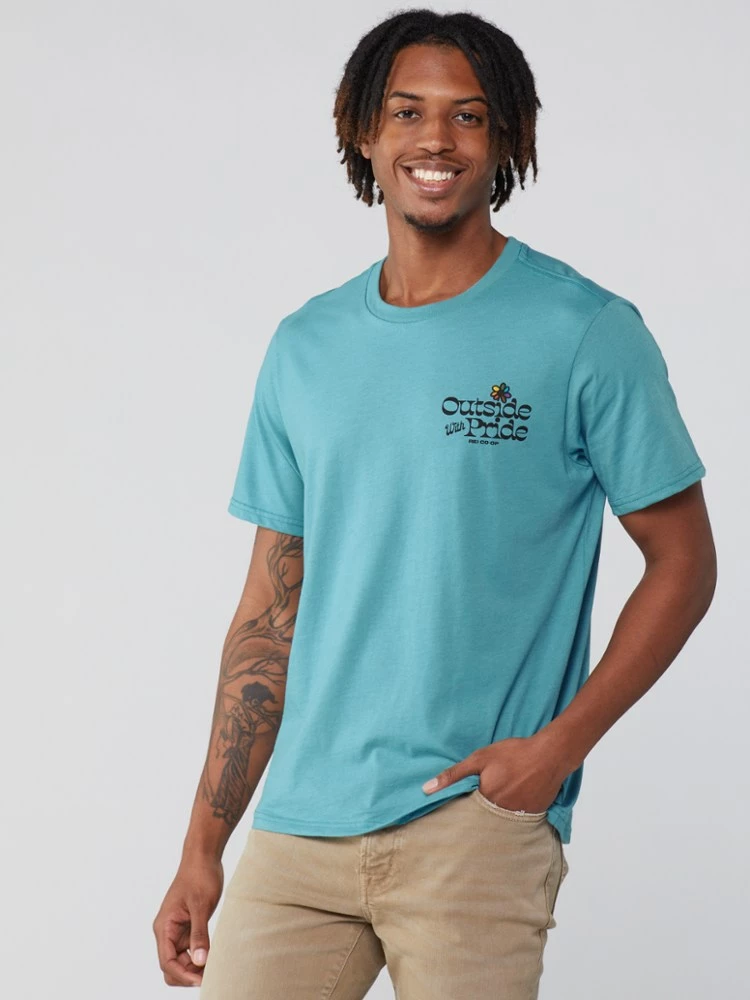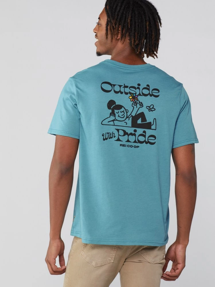 The REI Co-op Pride graphic T-shirt celebrates the good life, outside with pride. And it respects natural life—it’s made with recycled polyester and organically grown cotton.