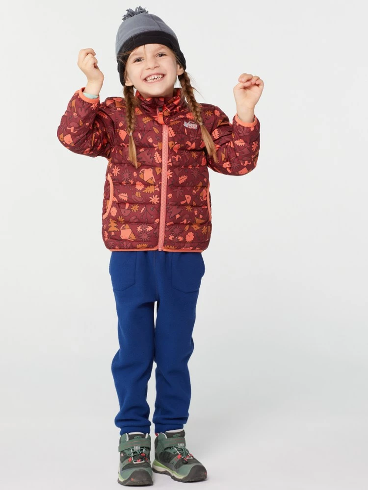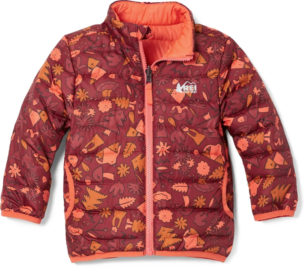The light and warm toddlers’ REI Co-op 650 Reversible down jacket keeps your tot cozy while avoiding snowsuit bulk, plus it reverses in case things get messy—and things always get messy.
