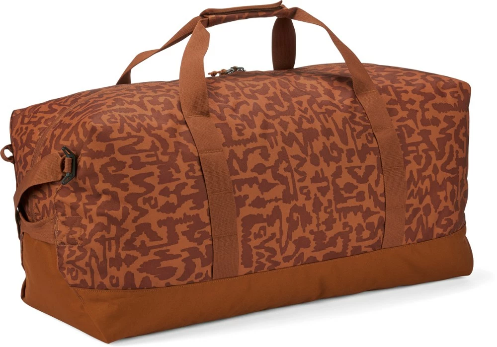 Cross-country or cross-continent, the REI Co-op printed Roadtripper 60 Duffel is happy in your rooftop box or trunk—or packed in its own cube in your luggage to handle souvenir overflow.