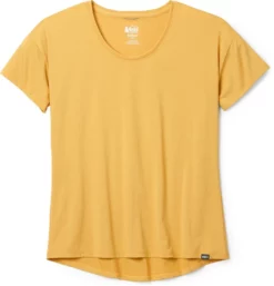 A true hiking staple, the women’s REI Co-op Sahara T-shirt wicks sweat, dries quickly, stretches and shades you with solid UPF 30 sun protection.