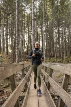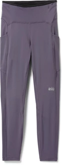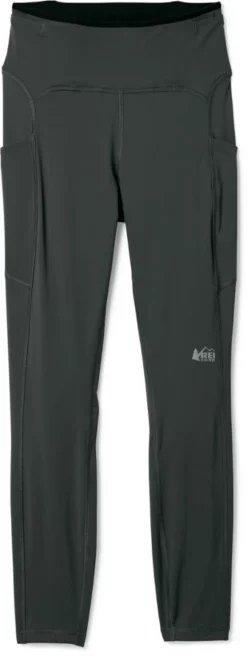 Power up, run far. Strong and stretchy, the women’s REI Co-op Swiftland 7/8 running tights hold your phone and anti-bonk energy snacks in compression pockets that won’t hinder your stride.