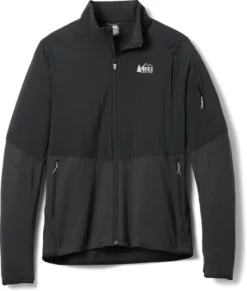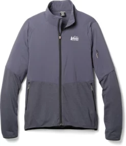 Hit the trail even as temps dip. Insulated ripstop nylon pairs with strategically placed, fleece-backed stretch knit built for movement in the men’s REI Co-op Swiftland insulated running jacket.