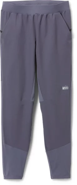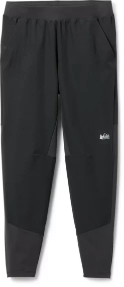 Stand up to any rainy day run in the men’s REI Co-op Swiftland Running Pants–with wind- and water-resistant fabric where you need protection most and 4-way stretch placed for comfort.