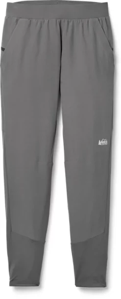 Stand up to any rainy day run in the men’s REI Co-op Swiftland Running Pants–with wind- and water-resistant fabric where you need protection most and 4-way stretch placed for comfort.
