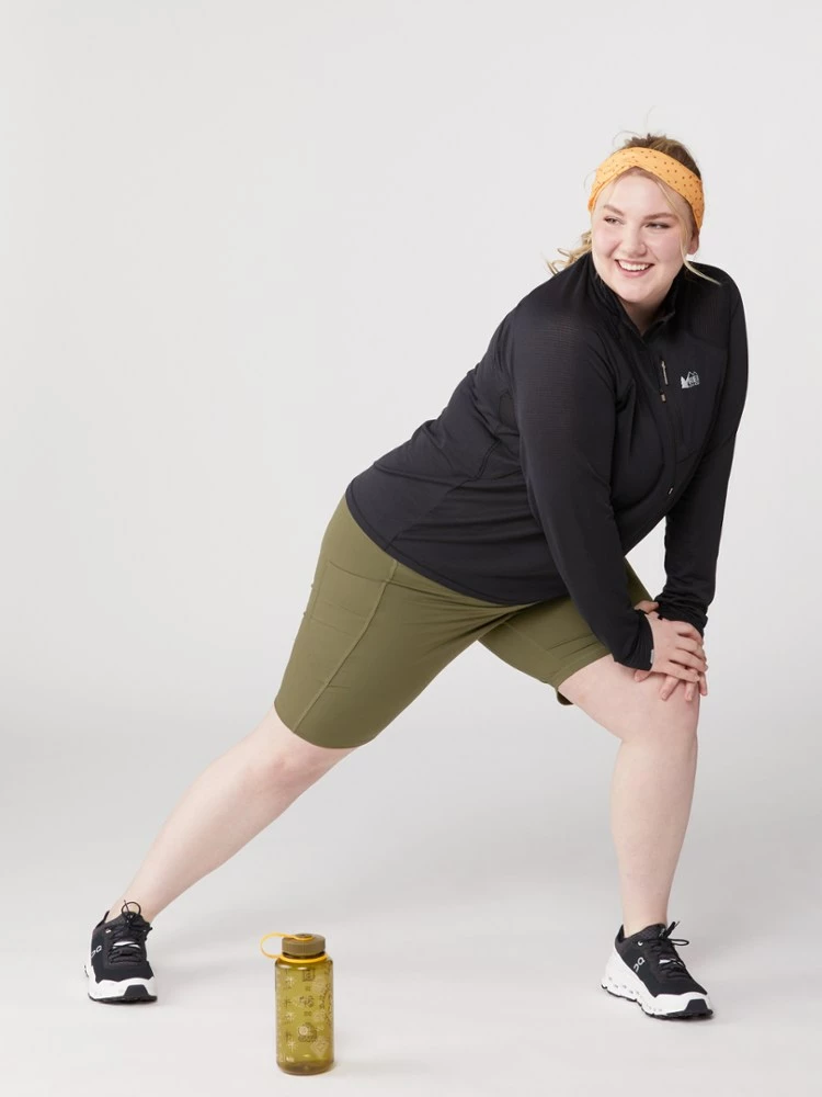 Your key to happiness on long runs, the cool, supportive women’s REI Co-op Swiftland training shorts have plenty of pockets to keep you supplied without crimping your stride.