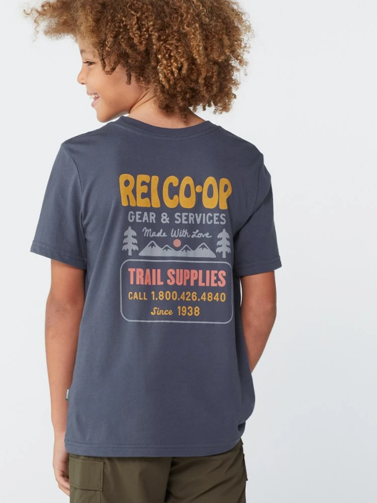 All the trail gear you need since 1938—now they can show their love while out and about in the kids’ short-sleeve REI Co-op Trail Supplies T-shirt.