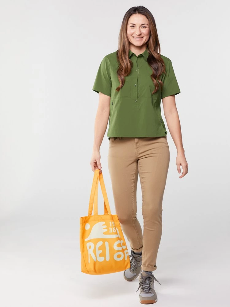 Explore freely in the women’s REI Co-op Trailmade short-sleeve pullover—designed with sun protection, trail-ready pocketing and lightweight nylon that breathes and sheds light moisture on hikes.