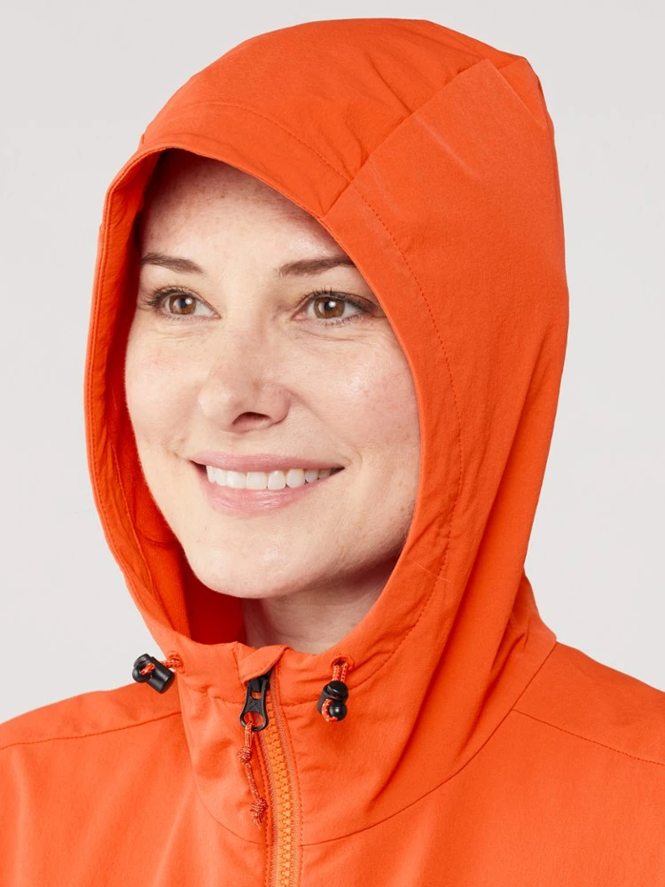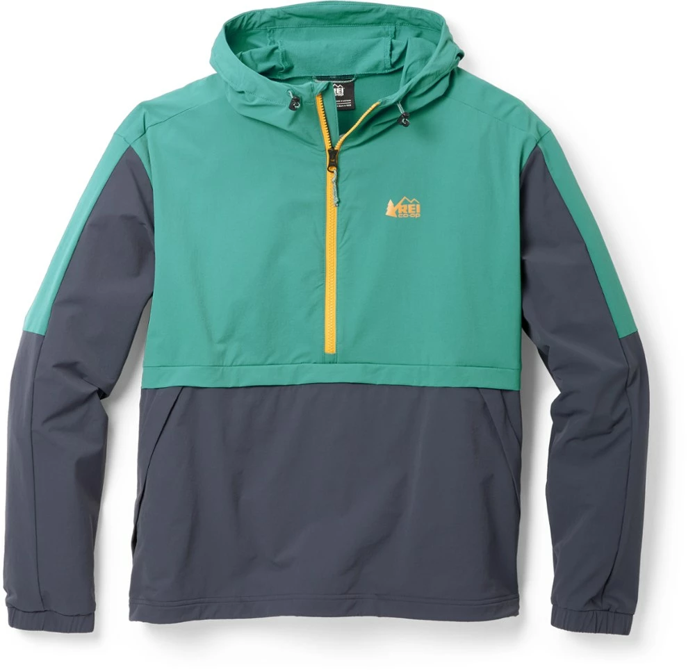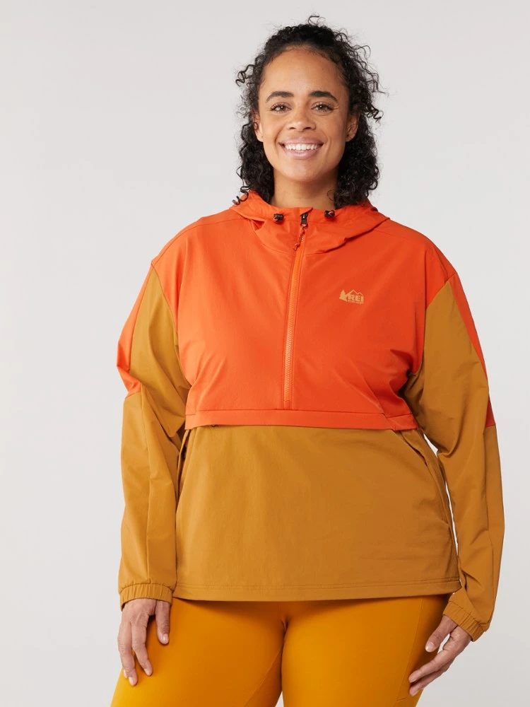 Hike that windy ridgeline. The women’s REI Co-op Trailmade soft-shell anorak is built to block wind and light rain with its stretch-nylon double-weave shell—it’s time to gear up and go.